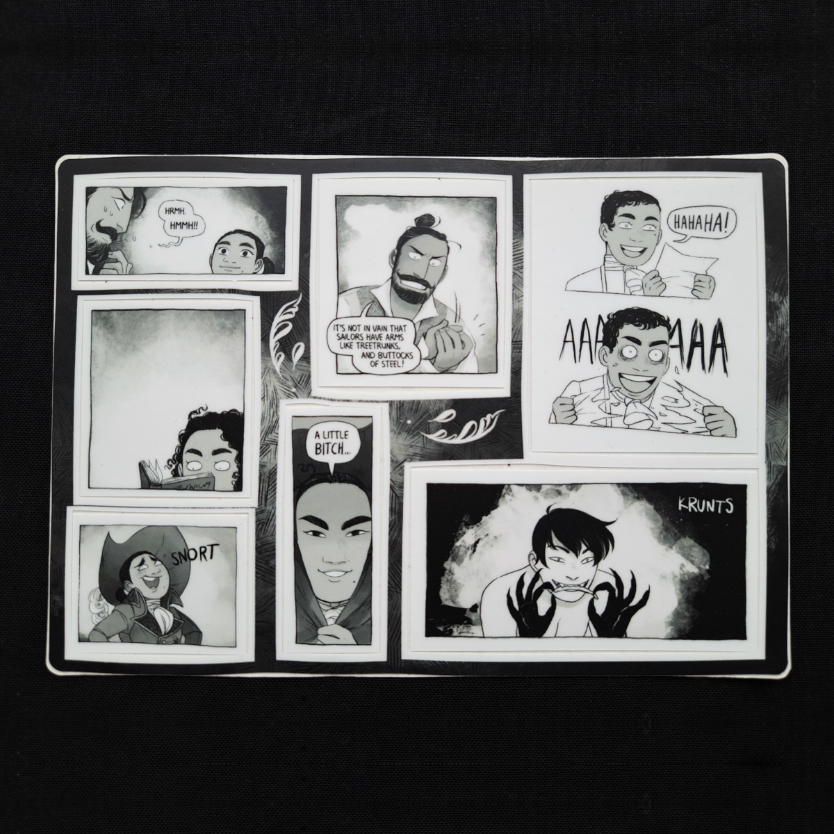 Sticker sheet printed on thick matte vinyl. 7 stickers.